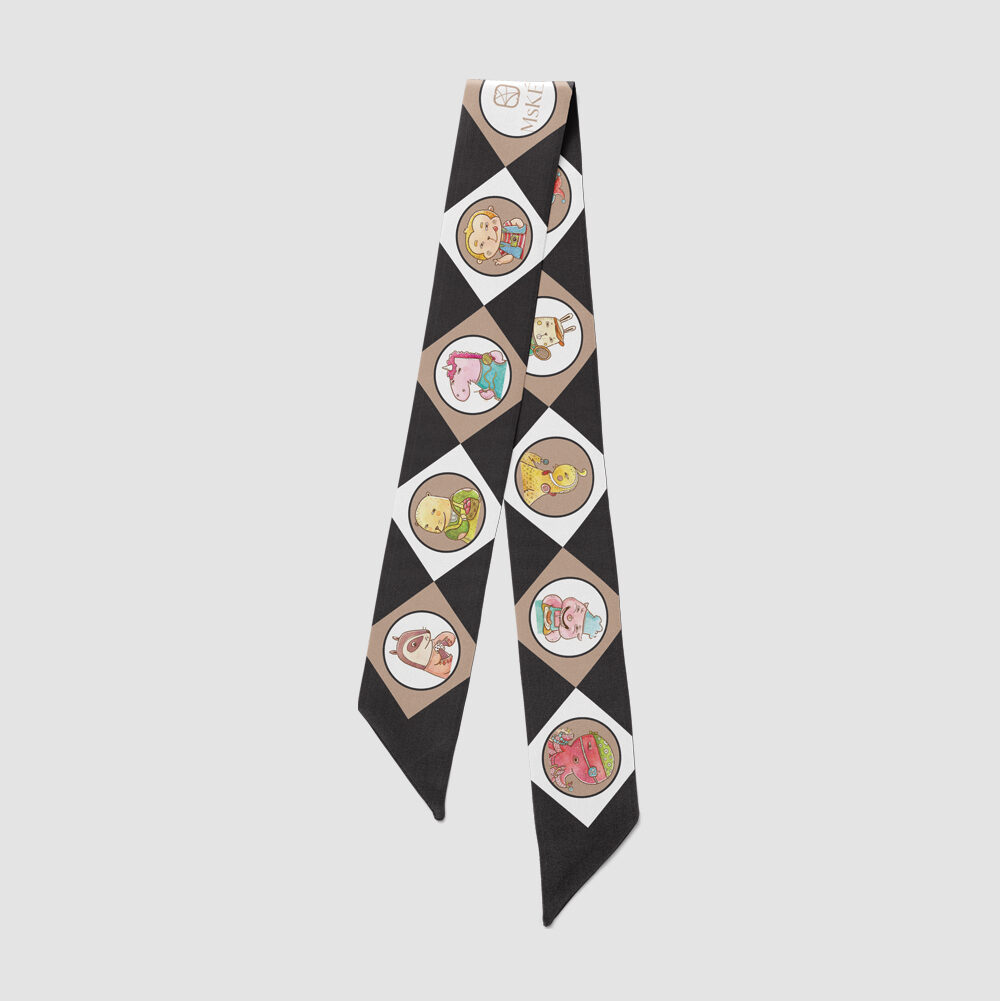 The “ANIMAL” twilly silk scarf is an elegant and incredibly versatile accessory. This small silk accessory can be tied in countless ways, bringing uniqueness to your everyday look! The twilly scarf can be worn as a bracelet, scarf, hair tie, bag scarf, etc.